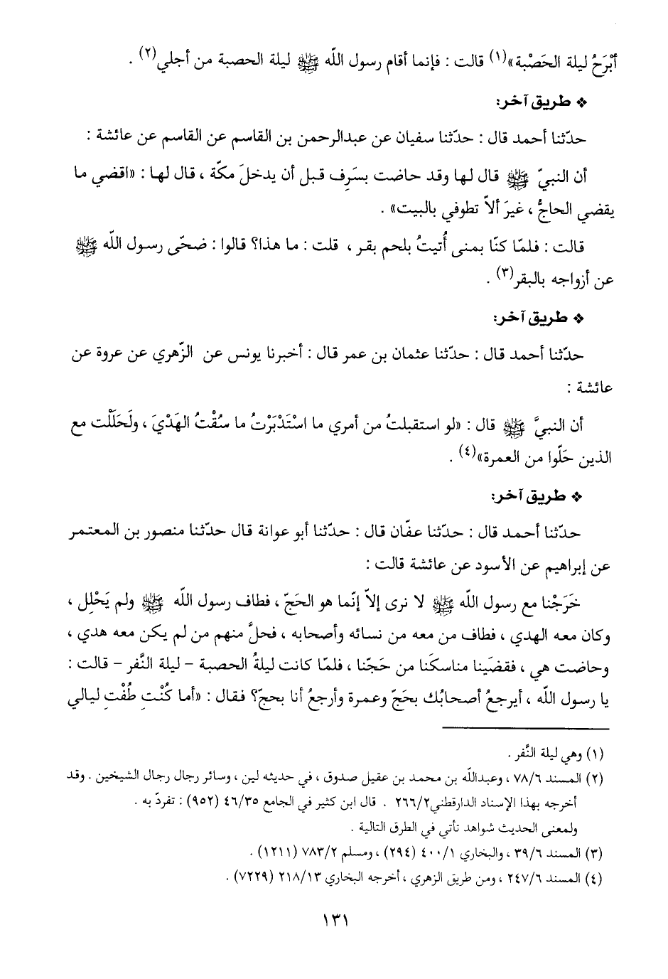 (٣) المسند ٦/ ٣٩، والبخاري ١/ ٠٠ ٤ (٢٩٤)، ومسلم ٢/ ٧٨٣ (١٢١١).