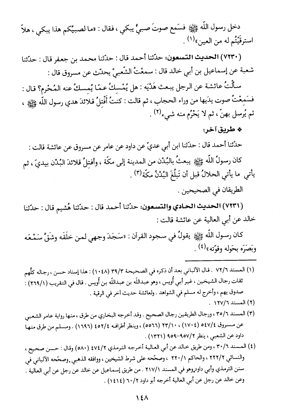 (٣) المسند ٦/ ٣٥، ورجال الطريقين رجال الصحيح. وقد أخرجه البخاري من طرق، منها رواية عامر الشعبي