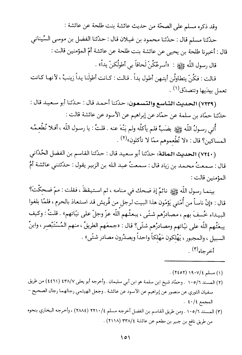 سفيان الثوري عن منصور عن إبراهيم عن الأسود عن عائشة. وجعل الهيثمي رجالهما رجال الصحيح-
