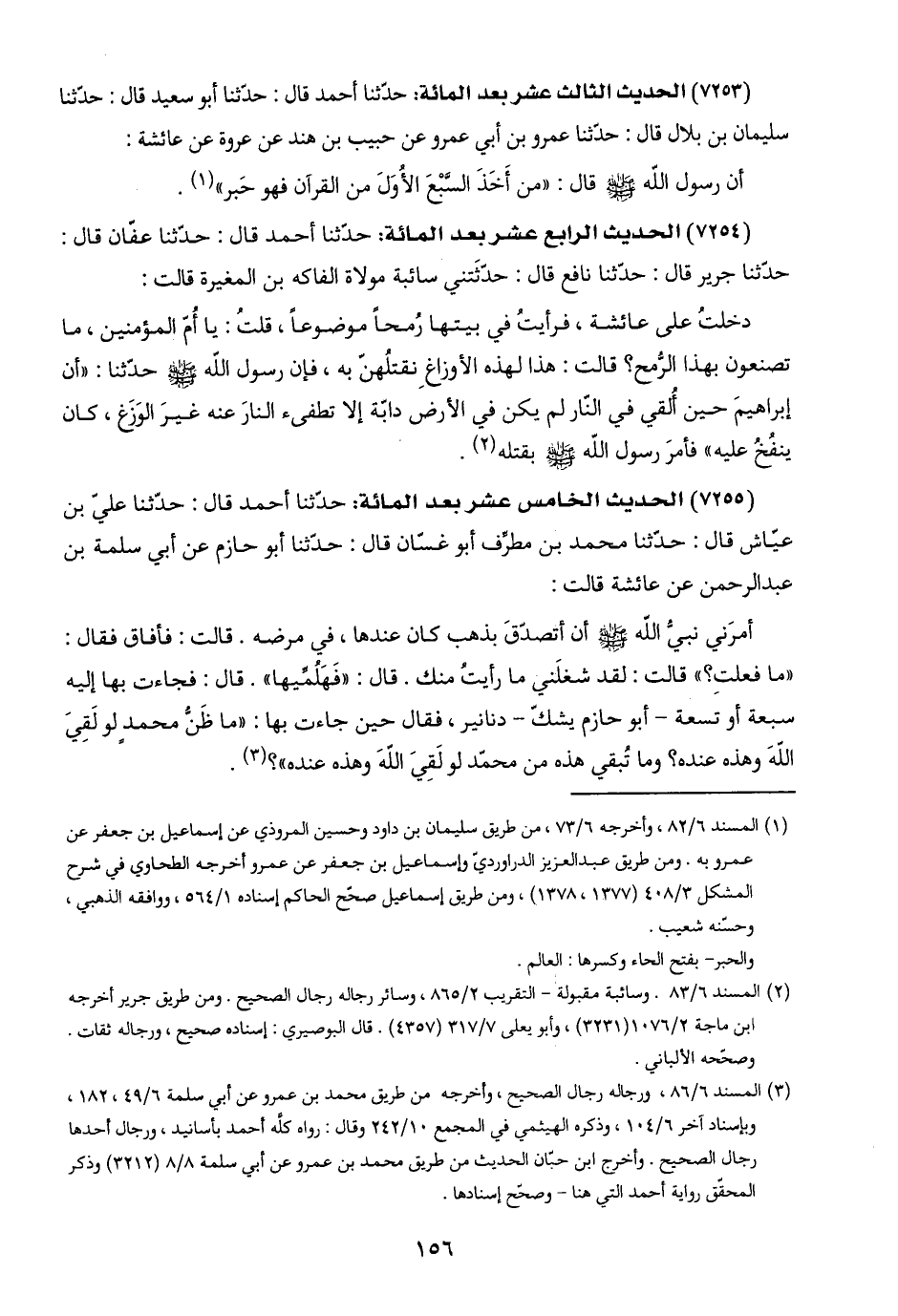 (١) المسند ٦/ ٨٢، وأخرجه ٦/ ٧٣، من طريق سليمان بن داود وحسين المروذي عن إسماعيل بن جعفر عن