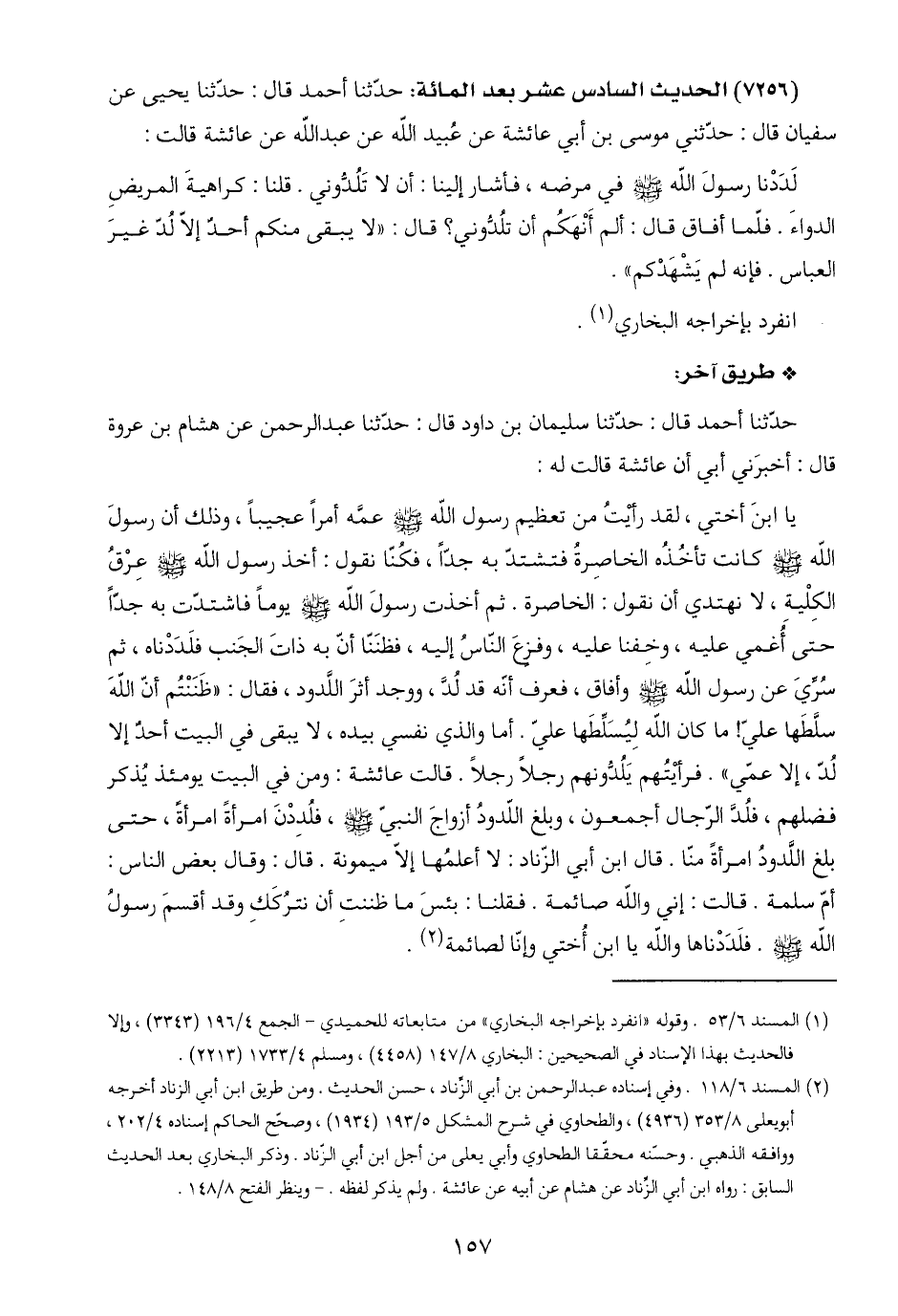 (١) المسند ٦/ ٥٣. وقوله "انفرد بإخراجه البخاري" من متابعاته للحميدي- الجمع ٤/ ١٩٦ (٣٣٤٣)، وإلا