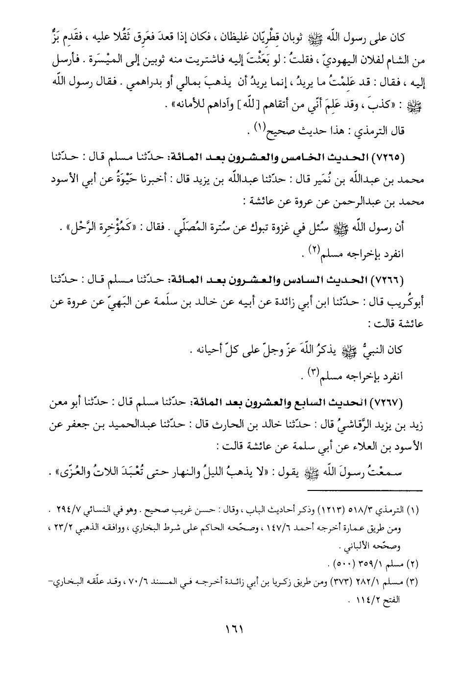 (٣) مسلم ١/ ٢٨٢ (٣٧٣) ومن طريق زكريا بن أبي زائدة أخرجه في المسند ٦/ ٧٠، وقد علّقه البخاري -