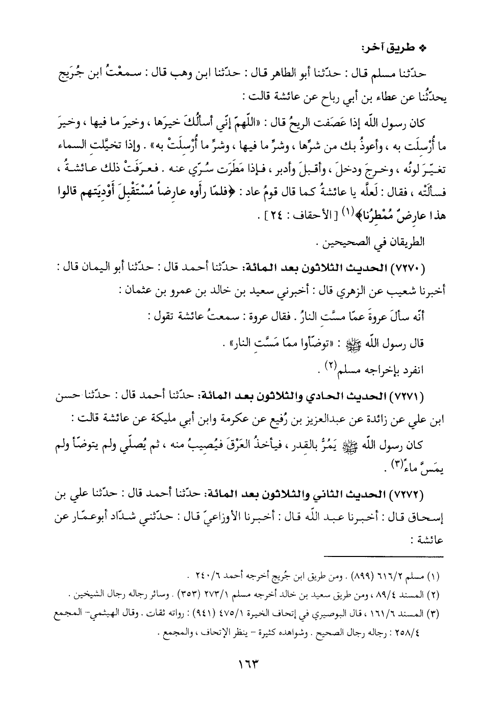 (٣) المسند ٦/ ١٦١، قال البوصيري في إتحاف الخيرة ١/ ٤٧٥ (٩٤١): رواته ثقات. وقال الهيثمي- المجمع