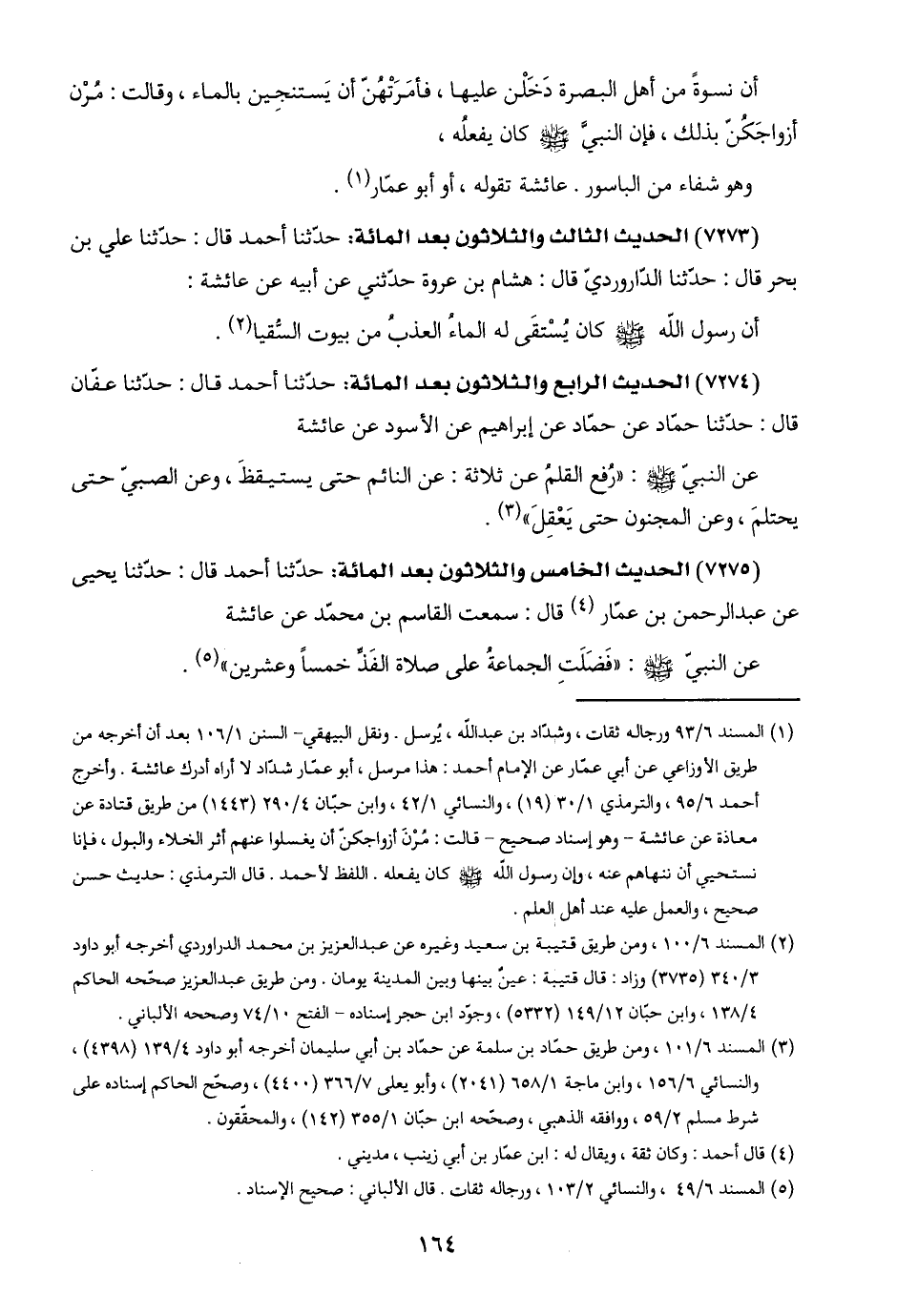 طريق الأوزاعي عن أبي عمّار عن الإمام أحمد: هذا مرسل، أبو عمّار شدّاد لا أراه أدرك عائشة. وأخرج
