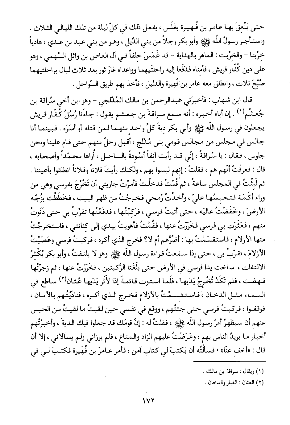 قال ابن شهاب: فأخبرَني عبد الرحمن بن مالك المُدْلجي- وهو ابن أخي سُراقة بن