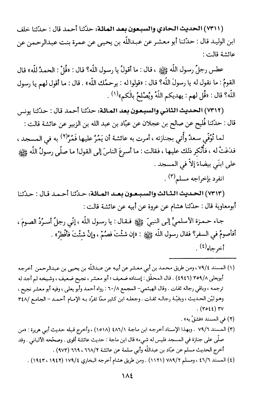 (٤) المسند ٦/ ٤٦، ومسلم ٢/ ٧٨٩ (١١٢١). ومن طريق هشام أخرجه البخاري ٤/ ١٧٩ (١٩٤٢، ١٩٤٣).