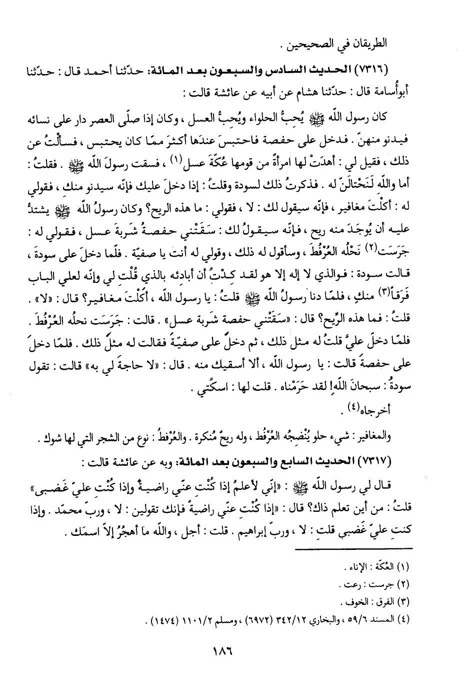 (٤) المسند ٦/ ٥٩، والبخاري ١٢/ ٣٤٢ (٦٩٧٢)، ومسلم ٢/ ١١٠١ (١٤٧٤).
