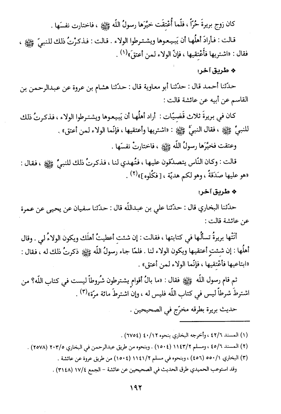 حديث بريرة بطرقه مخرّج في الصحيحين.