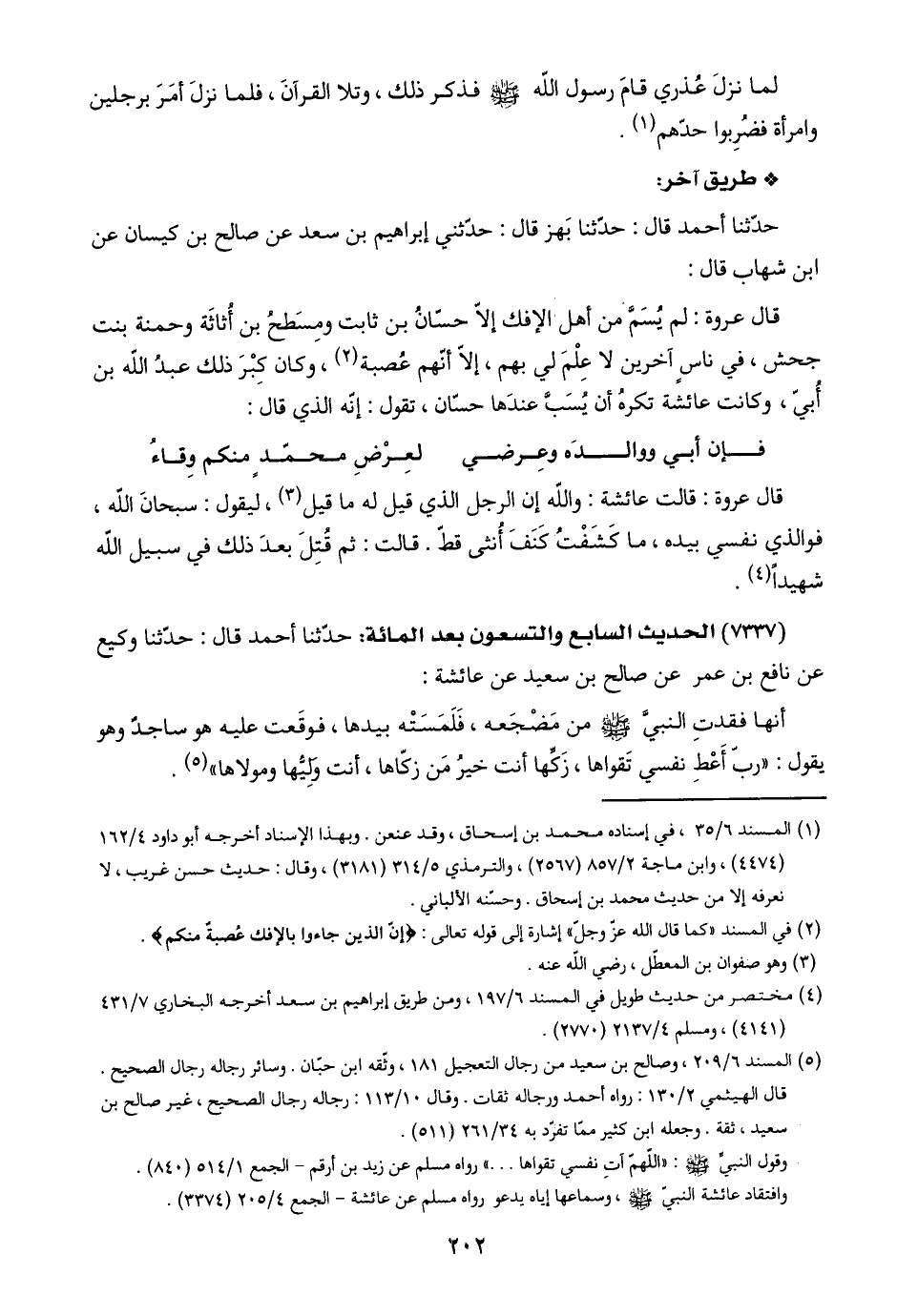 (٥) المسند ٦/ ٢٠٩، وصالح بن سعيد من رجال التعجيل ١٨١، وثّقه ابن حبّان. وسائر رجاله رجال الصحيح.