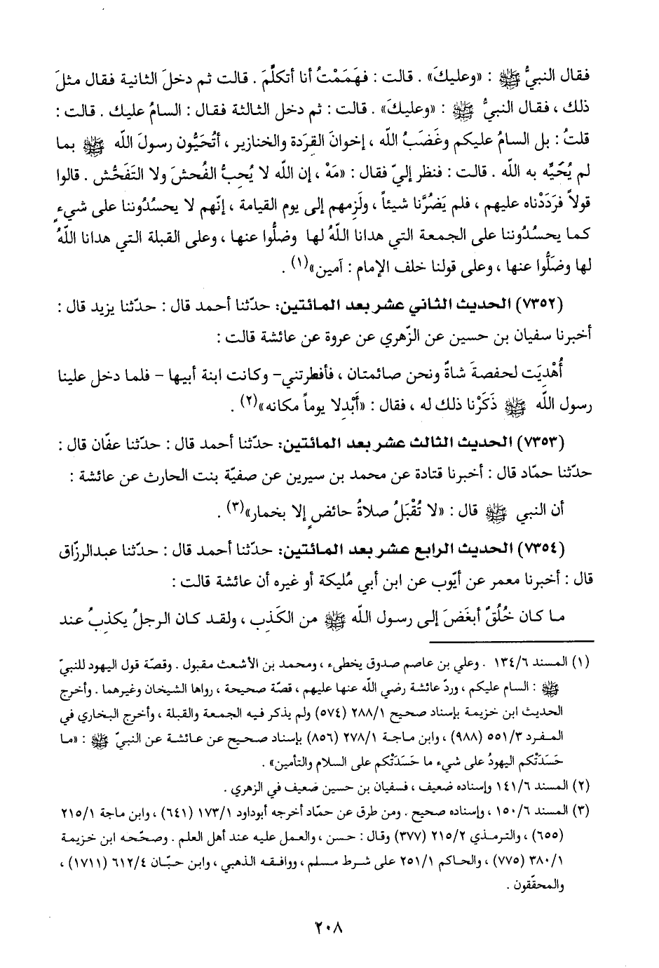 - صلى الله عليه وسلم -: السام عليكم، وردّ عائشة رضي الله عنها عليهم، قصّة صحيحة، رواها الشيخان وغيرهما. وأخرج