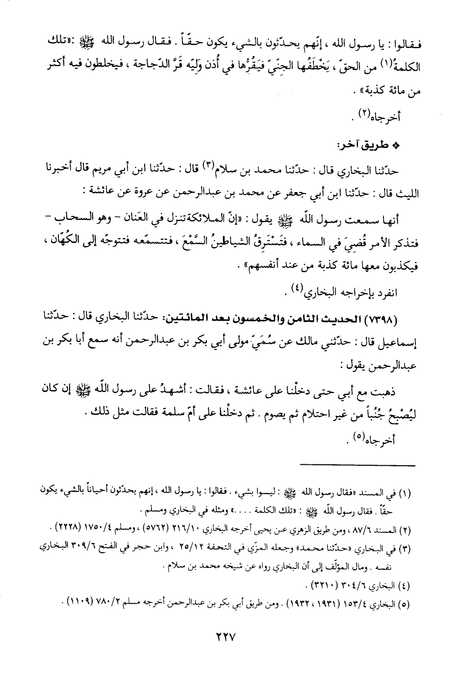 نفسه. ومال المؤلّف إلى أن البخاري رواه عن شيخه محمَّد بن سلام.