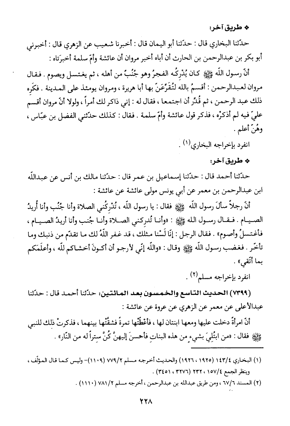 (١) البخاري ٤/ ١٤٣ (١٩٢٥، ١٩٢٦) والحديث أخرجه مسلم ٢/ ٧٧٩ (١١٠٩) - وليس كما قال المؤلّف،
