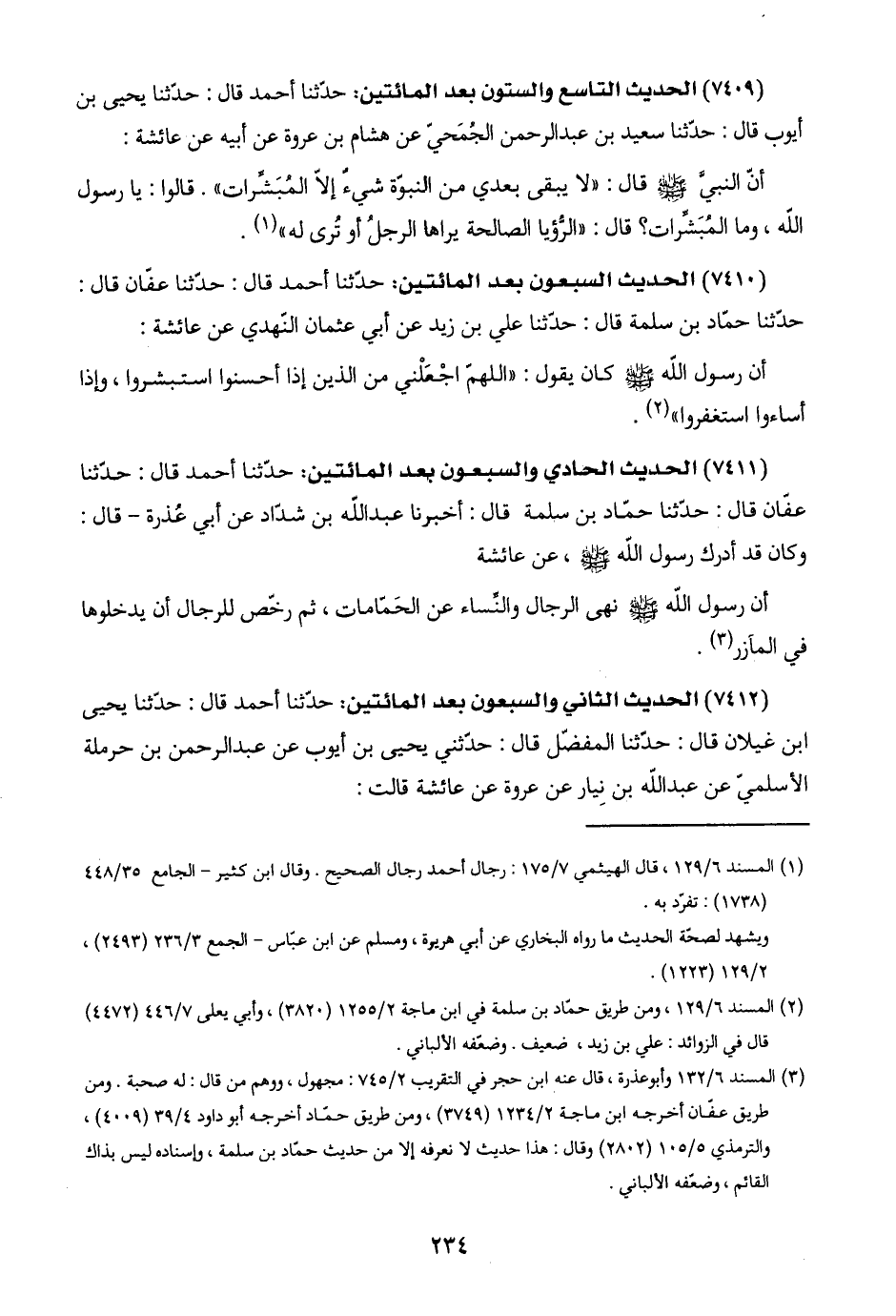 (٧٤١٢) الحديث الثاني والسبعون بعد المائتين: حدّثنا أحمد قال: حدّثنا يحيى