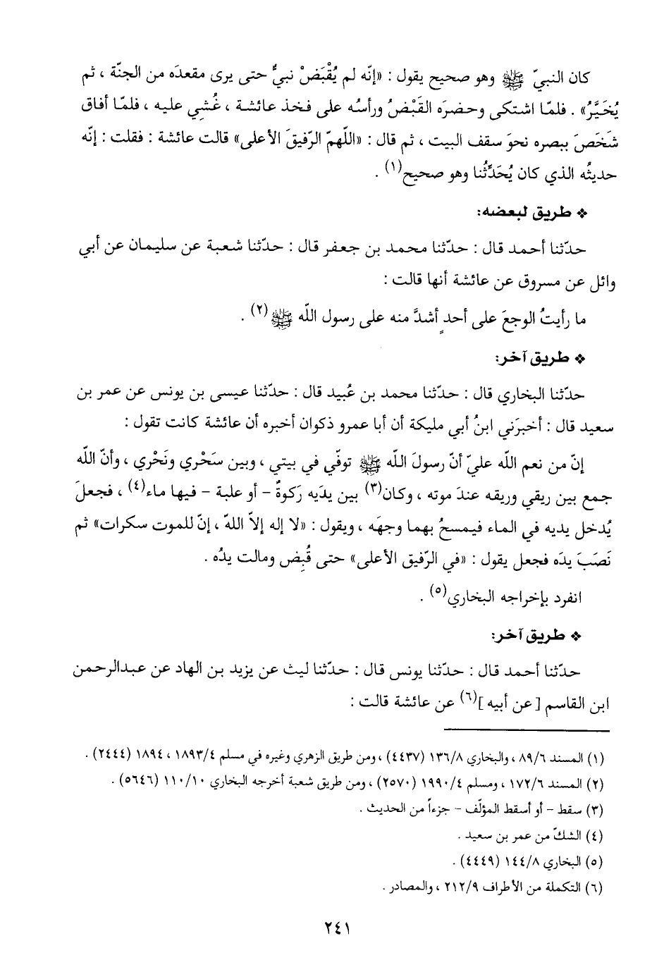 (١) المسند ٦/ ٨٩، والبخاري ٨/ ١٣٦ (٤٤٣٧)، ومن طريق الزهري وغيره في مسلم ٤/ ١٨٩٣، ١٨٩٤ (٢٤٤٤).