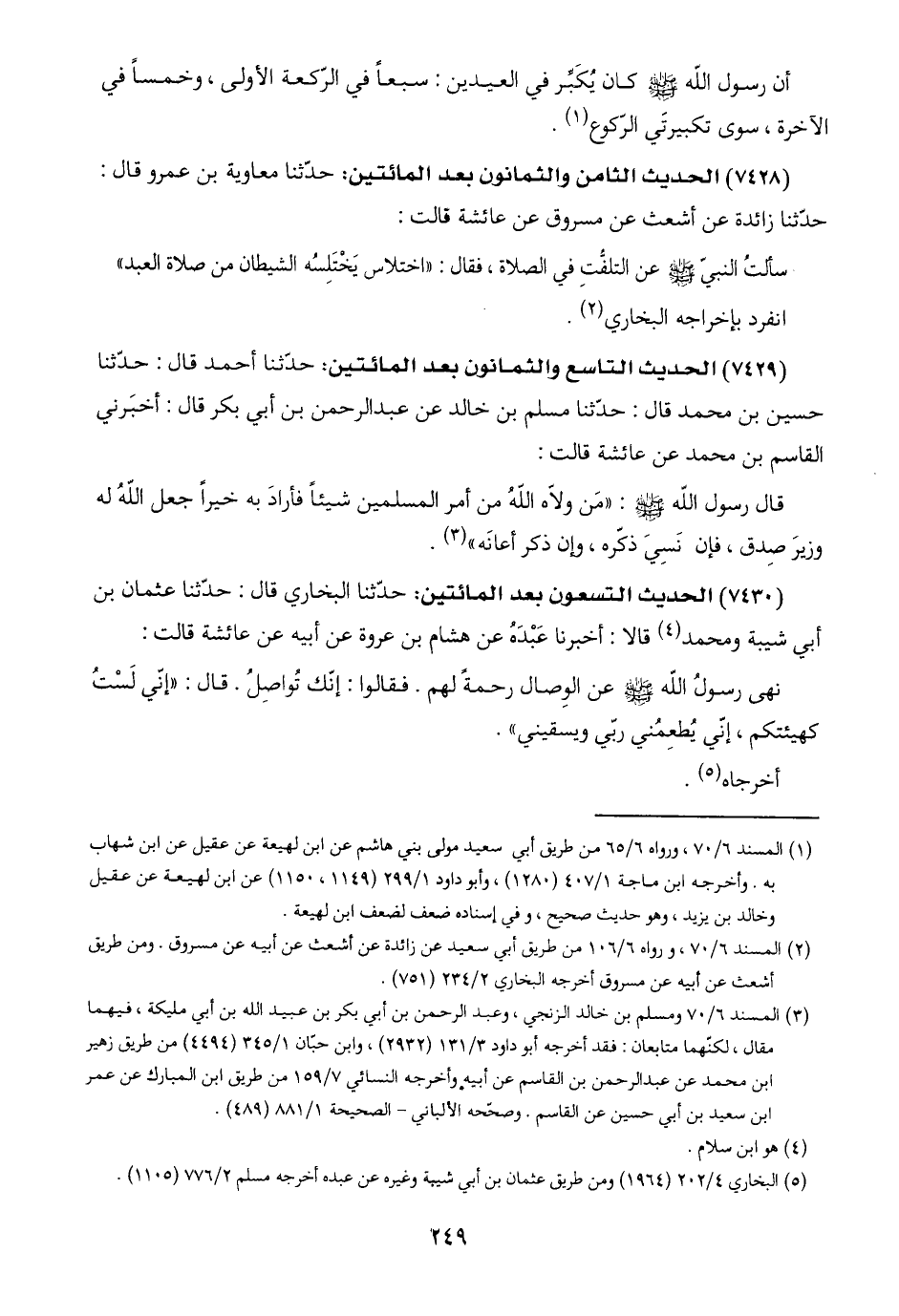 (٧٤٢٨) الحديث الثامن والثمانون بعد المائتين: حدّثنا معاوية بن عمرو قال:
