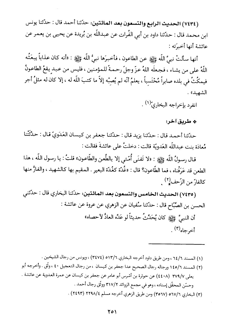 الطعن قد عَرَفْناه، فما الطّاعون؟ قال: "غُدّة كغُدّة البعير. المقيم بها كالشهيد، والفارُّ منها