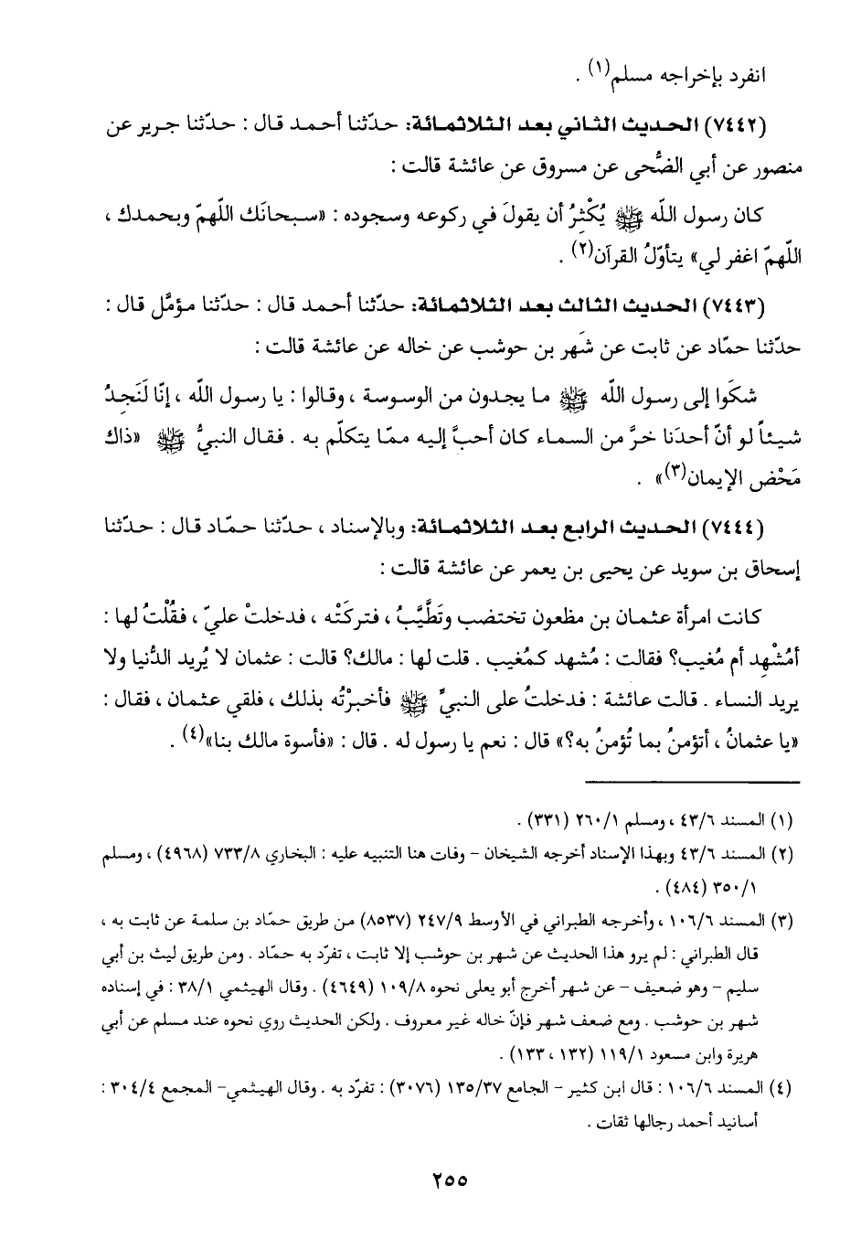 (٤) المسند ٦/ ١٠٦: قال ابن كثير - الجامع ٣٧/ ١٣٥ (٣٠٧٦): تفرّد به. وقال الهيثمي - المجمع ٤/ ٣٠٤: