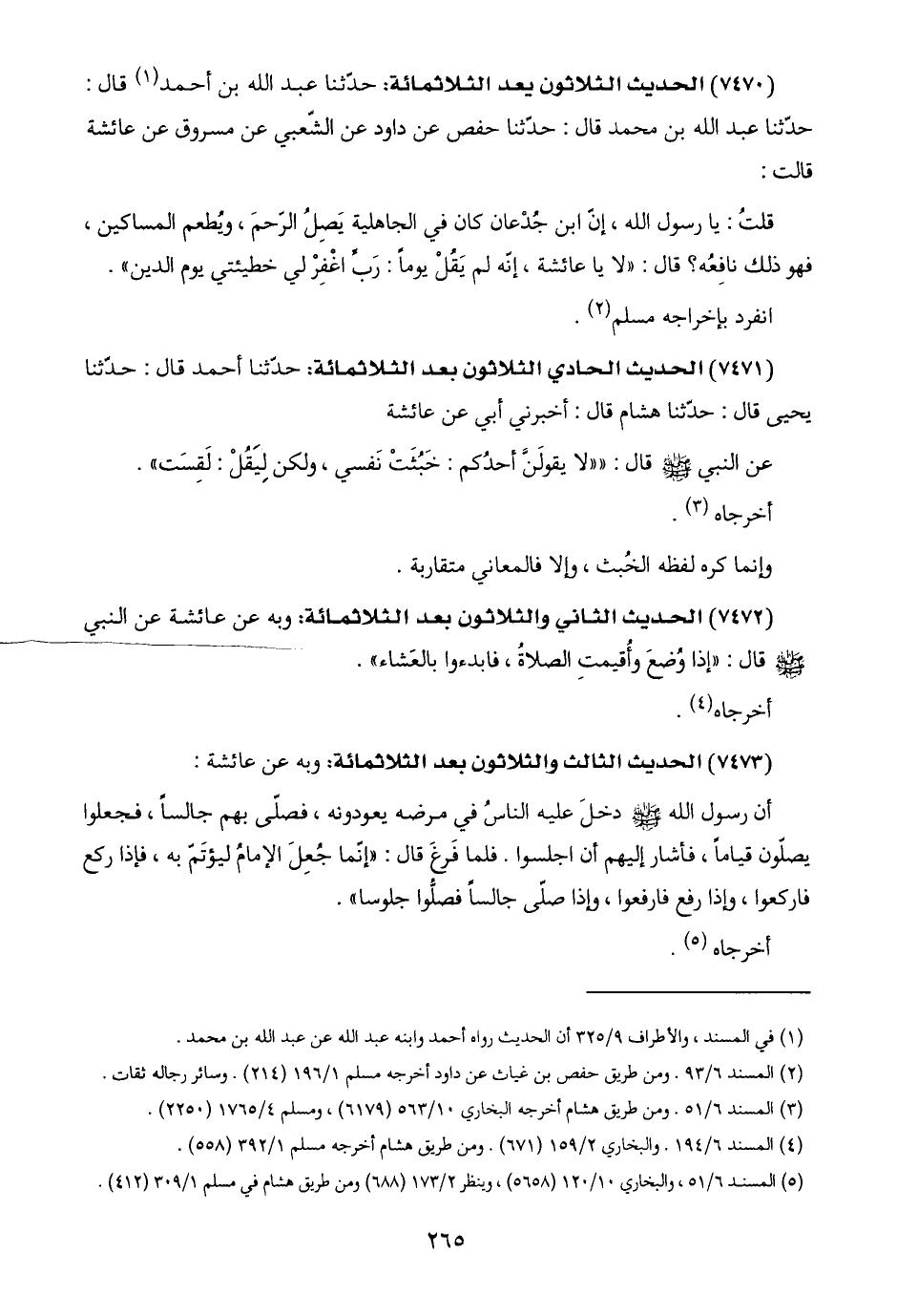 (٥) المسند ٦/ ٥١، والبخاري ١٠/ ١٢٠ (٥٦٥٨)، وينظر ٢/ ١٧٣ (٦٨٨) ومن طريق هشام في مسلم ١/ ٣٠١ (٤١٢).