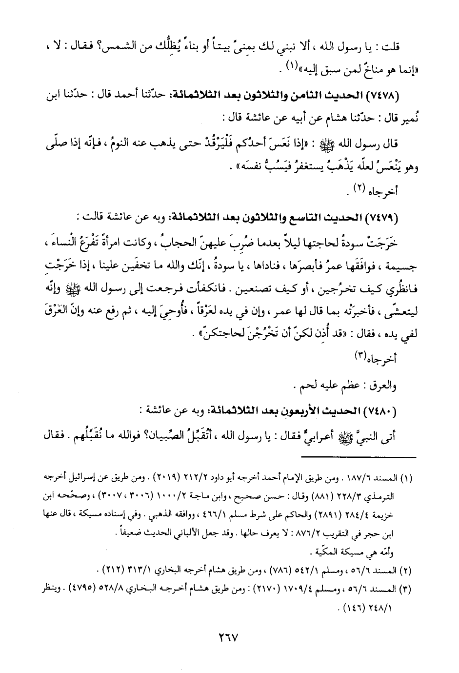 (٢) المسند ٦/ ٥٦، ومسلم ١/ ٥٤٢ (٧٨٦)، ومن طريق هشام أخرجه البخاري ١/ ٣١٣ (٢١٢).