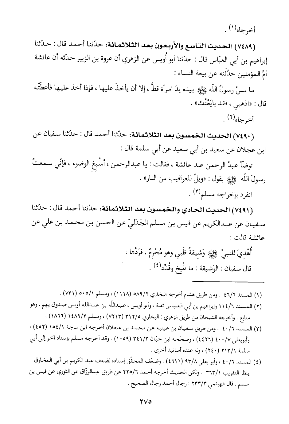(٢) المسند ٦/ ١١٤ وإبراهيم بن أبي العباس ثقة، وأبو أويس، عبدالله بن عبدالله أويس صدوق يهم، وهو