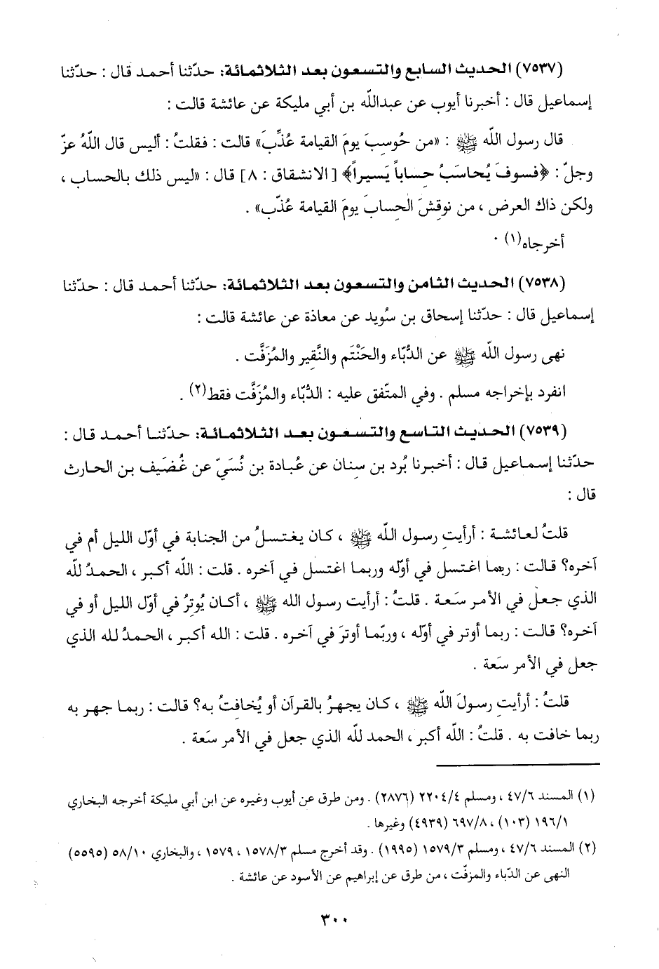 (٢) المسند ٦/ ٤٧، ومسلم ٣/ ١٥٧٩ (١٩٩٥). وقد أخرج مسلم ٣/ ١٥٧٩، ١٥٧٩، والبخاري ١٠/ ٥٨ (٥٥٩٥)
