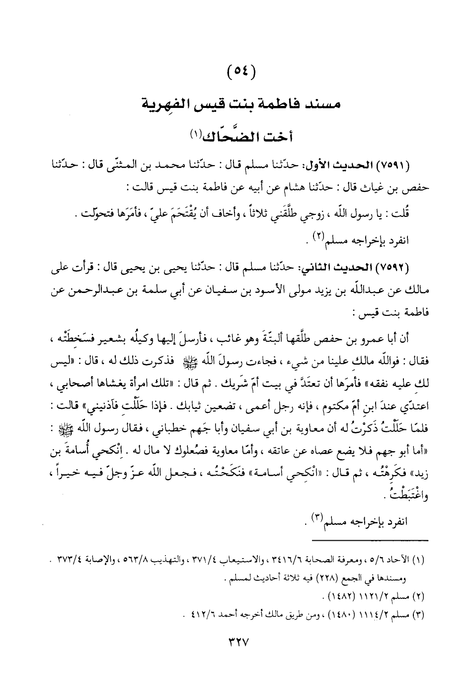 ومسندها في الجمع (٢٢٨) فيه ثلاثهَ أحاديث لمسلم.