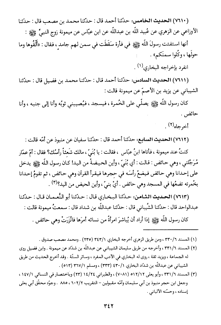 (٢) المسند ٦/ ٣٣١، وأخرجه من طريق سليمان الشيباني عن عبد الله بن شدّاد عن ميمونة. وابن فضيل روى