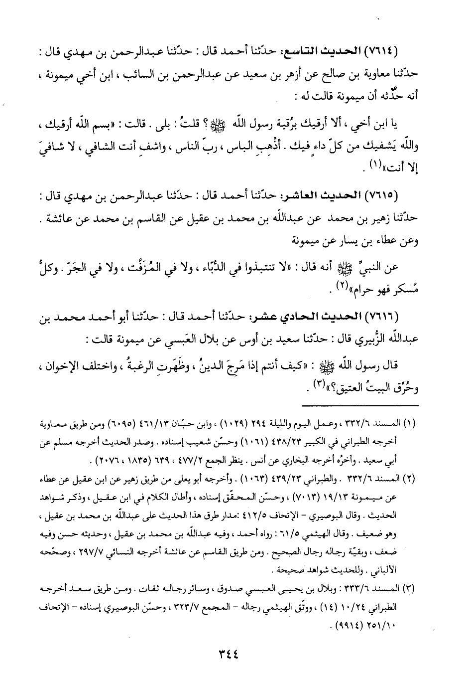 عن ميمونة ١٣/ ١٩ (٧٠١٣)، وحسّن المحقّق إسناده، وأطال الكلام في ابن عقيل، وذكر شواهد
