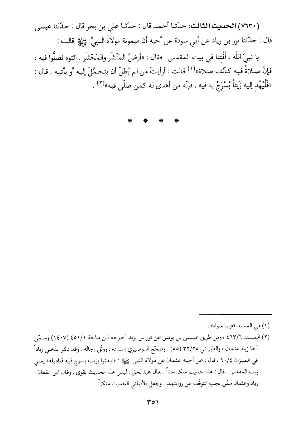 (٧٦٣٠) الحديث الثالث: حدّثنا أحمد قال: حدّثنا علي بن بحر قال: حدّثنا عيسى