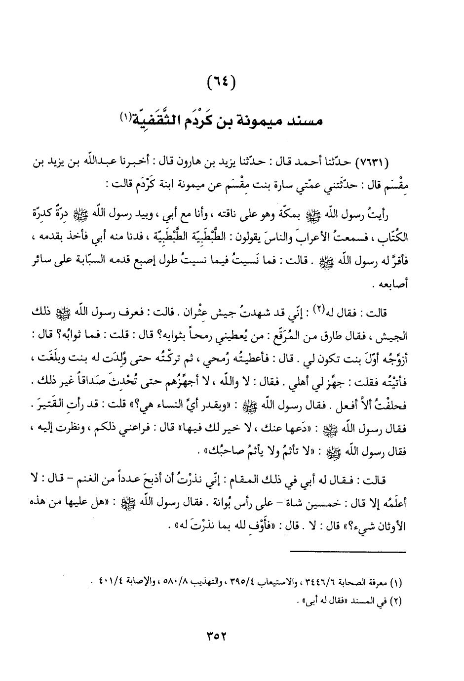 مسند ميمونة بن كَرْدَم الثَّقَفِيّة (١)