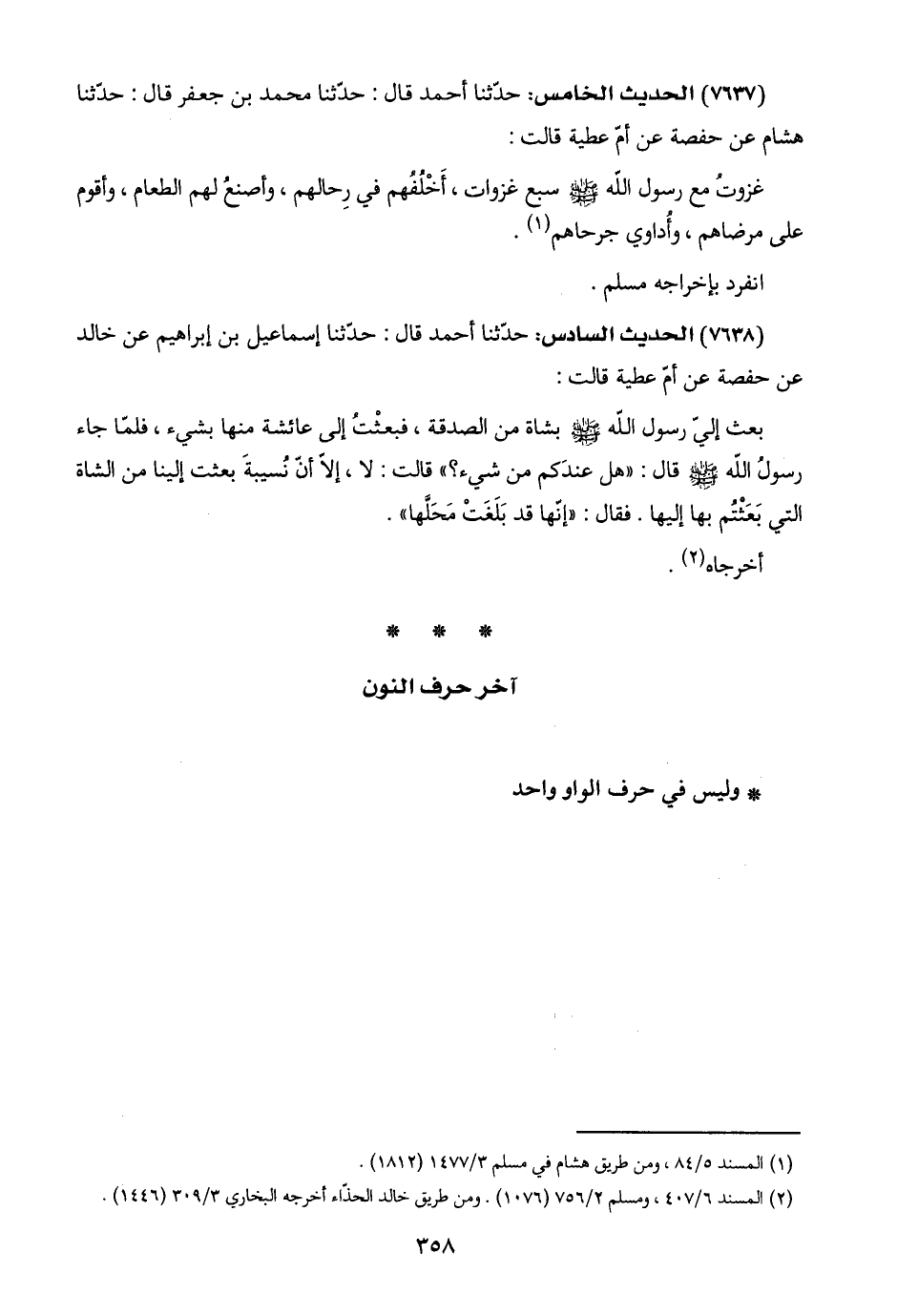 (٢) المسند ٦/ ٤٠٧، ومسلم ٢/ ٧٥٦ (١٠٧٦). ومن طريق خالد الحذّاء أخرجه البخاري ٣/ ٣٠٩ (١٤٤٦).