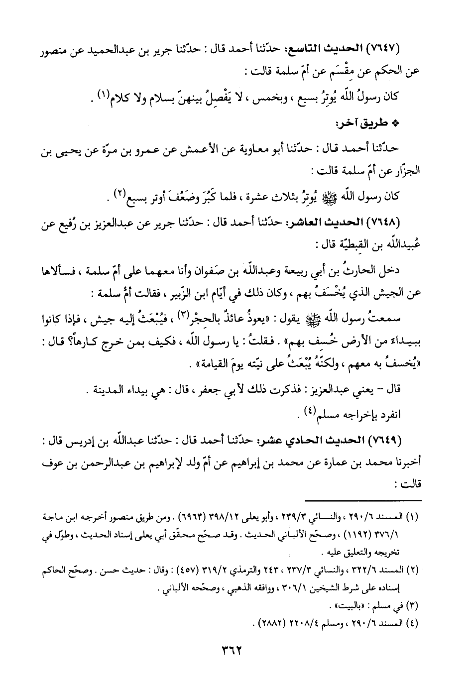 (٢) المسند ٦/ ٣٢٢، والنسائي ٣/ ٢٣٧، ٢٤٣ والترمذي ٢/ ٣١٩ (٤٥٧): وقال: حديث حسن. وصحّح الحاكم