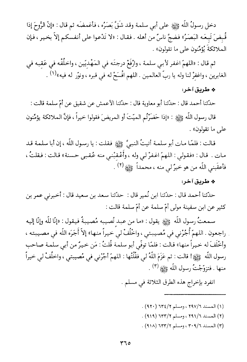 (٣) المسند ٦/ ٣٠٩، ومسلم ٢/ ٦٣٣ (٩١٨).