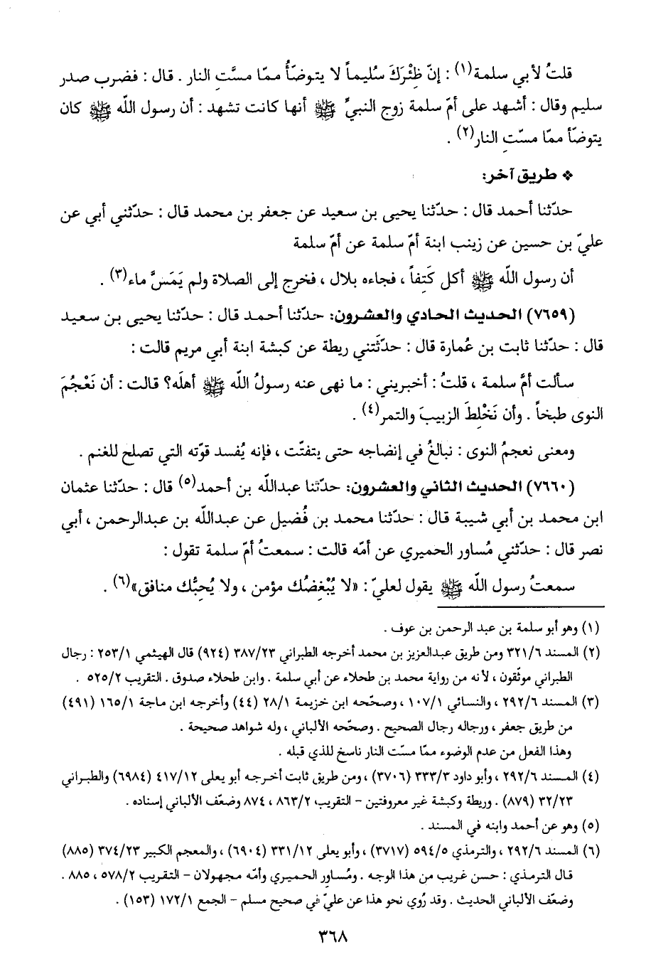 (٦) المسند ٦/ ٢٩٢، والترمذي ٥/ ٥٩٤ (٣٧١٧)، وأبو يعلي ١٢/ ٣٣١ (٦٩٠٤)، والمعجم الكبير ٢٣/ ٣٧٤ (٨٨٥)