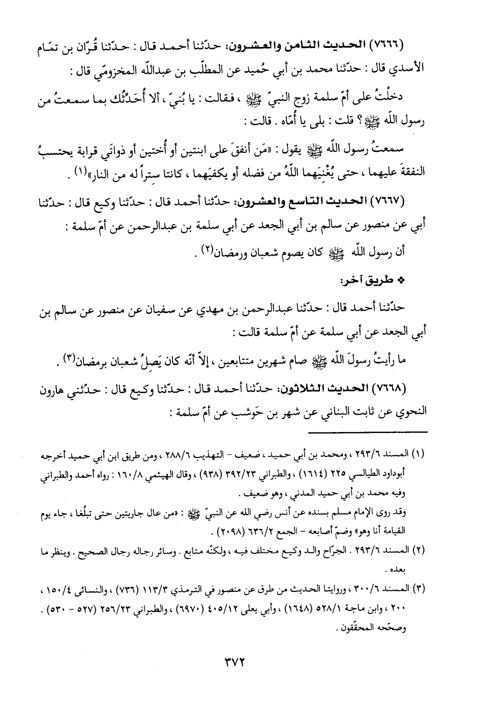 (١) المسند ٦/ ٢٩٣، ومحمد بن أبي حميد، ضعيف- التهذيب ٦/ ٢٨٨، ومن طريق ابن أبي حميد أخرجه