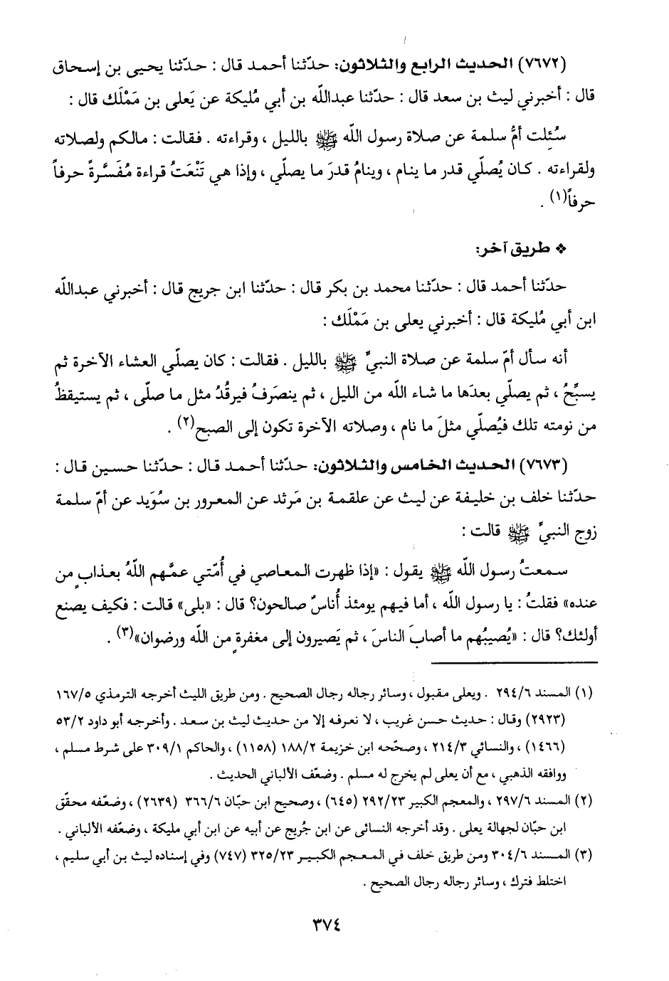 حدّثنا خلف بن خليفة عن ليث عن علقمة بن مَرثد عن المعرور بن سُوَيد عن أمَّ سلمة