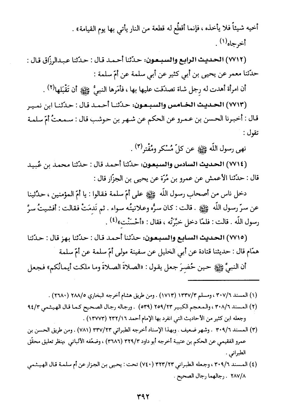 (٤) المسند ٦/ ٣٠٩، وجعله الطبراني ٢٣/ ٣٢٣ (٧٤٠) يحيى بن الجزار عن أم سلمة قال الهيثمي