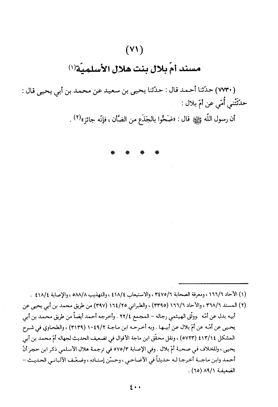 مسند أمّ بلال بنت هلال الأسلميّة (١)
