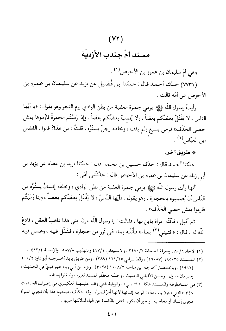 (٢) المسند ٢٥/ ٤٩٥ (١٦٠٨٧)، والطبراني ٢٥/ ١٦١ (٣٨٩). ومن طريق يزيد أخرجه أبو داود ٢/ ٢٠٠
