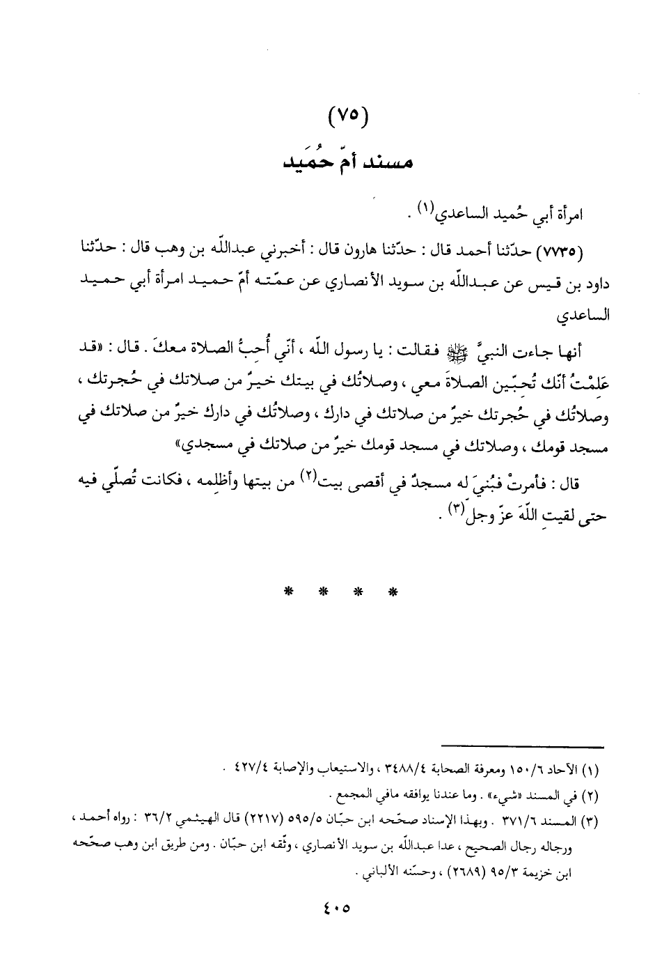 (٣) المسند ٦/ ٣٧١. وبهذا الإسناد صحّحه ابن حيّان ٥/ ٥٩٥ (٢٢١٧) قال الهيثمي ٢/ ٣٦: رواه أحمد،
