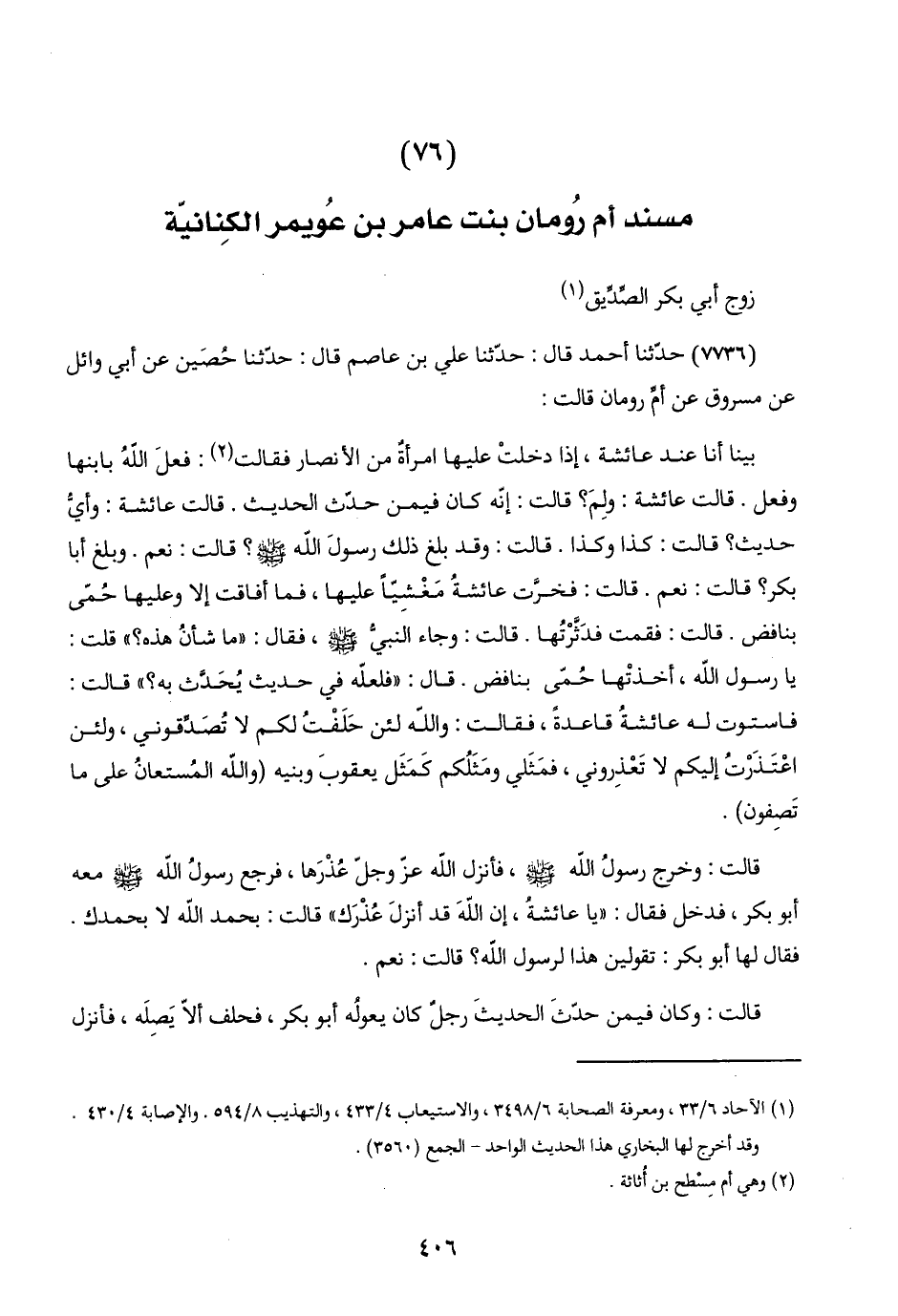 مسند أم رُومان بنت عامر بن عُويمر الكِنانيّة
