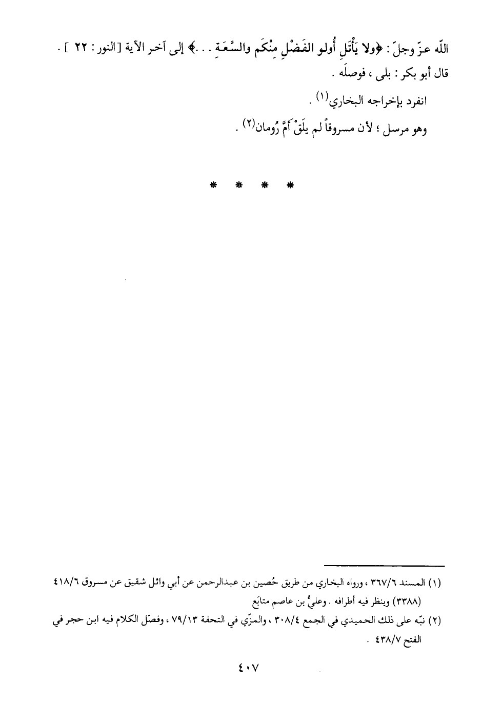 (١) المسند ٦/ ٣٦٧، ورواه البخاري من طريق حُصين بن عبدالرحمن عن أبي وائل شقيق عن مسروق ٦/ ٤١٨
