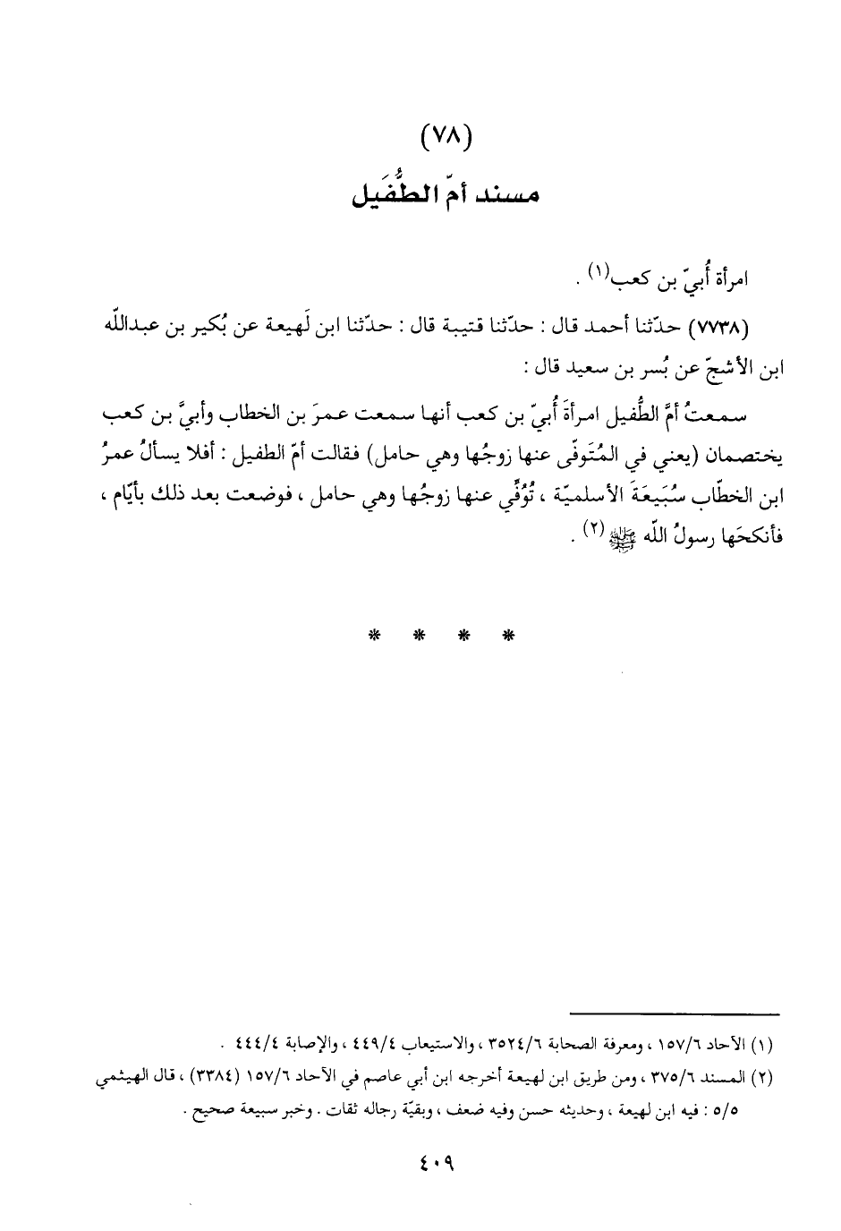سمعتُ أمَّ الطفيل امرأةَ أبيّ بن كعب أنها سمعت عمرَ ين الخطاب وأبيَّ بن كعب