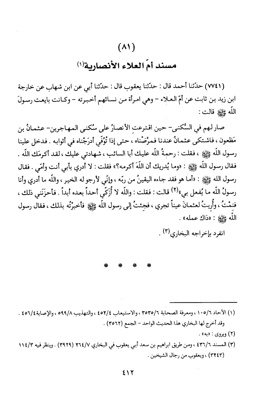 مسند أمّ العلاء الأنصارية (١)