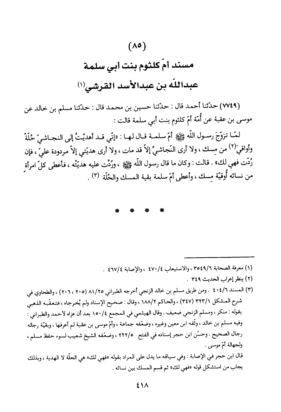 (٣) المسند ٦/ ٤٠٤. ومن طريق مسلم بن خالد الزنجي أخرجه الطبراني ٢٥/ ٨١ (٢٠٥، ٢٠٦)، والطحاوي في