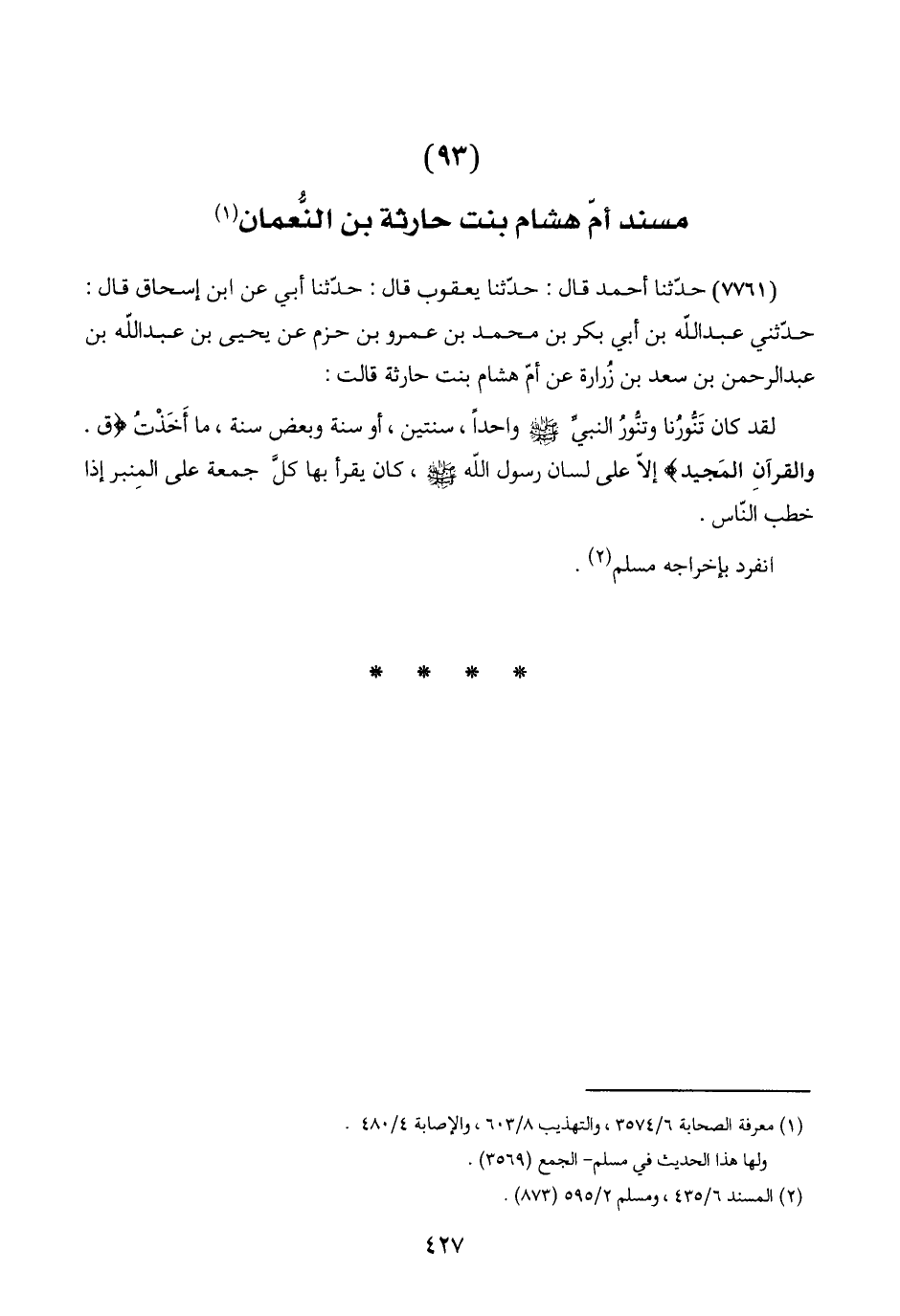 مسند أمّ هشام بنت حارثة بن النُّعمان (١)