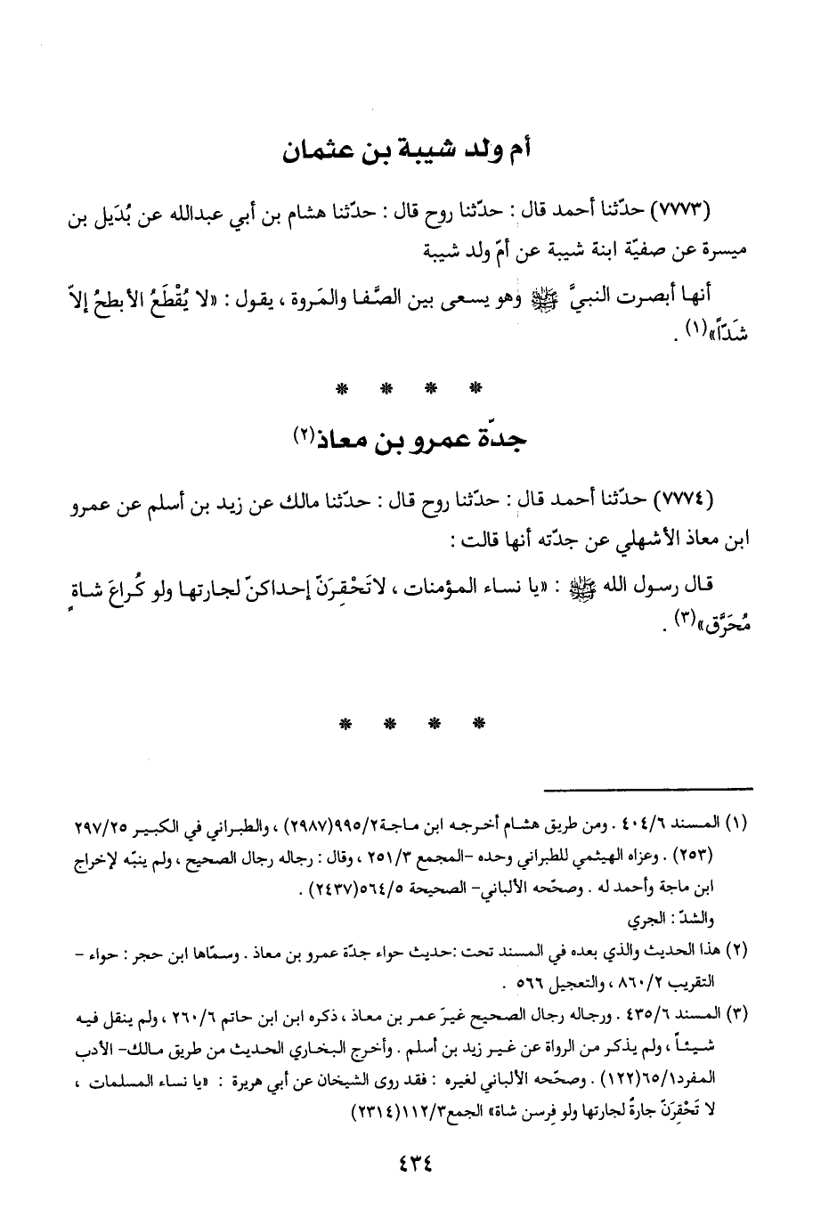 (٣) المسند ٦/ ٤٣٥. ورجاله رجال الصحيح غيرَ عمر بن معاذ، ذكره ابن ابن حاتم ٦/ ٢٦٠، ولم ينقل فيه