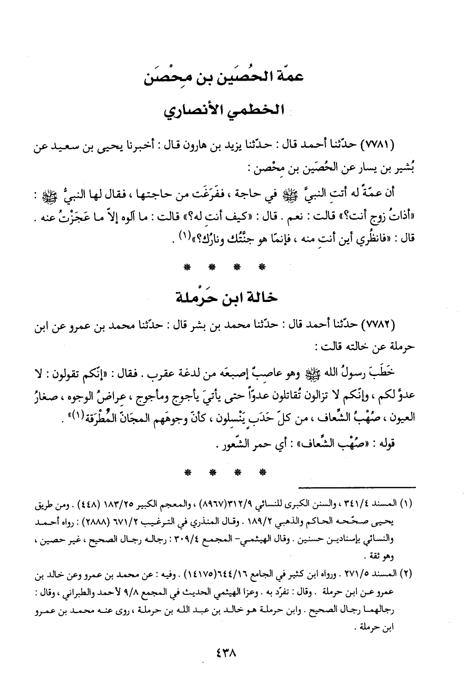 (٧٧٨٢) حدّثنا أحمد قال: حدّثنا محمد بن بشر قال: حدّثنا محمد بن عمرو عن ابن