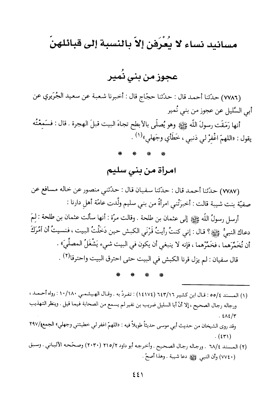 مسانيد نساء لا يُعْرَفن إلاّ بالنسبة إلى قبائلهنّ