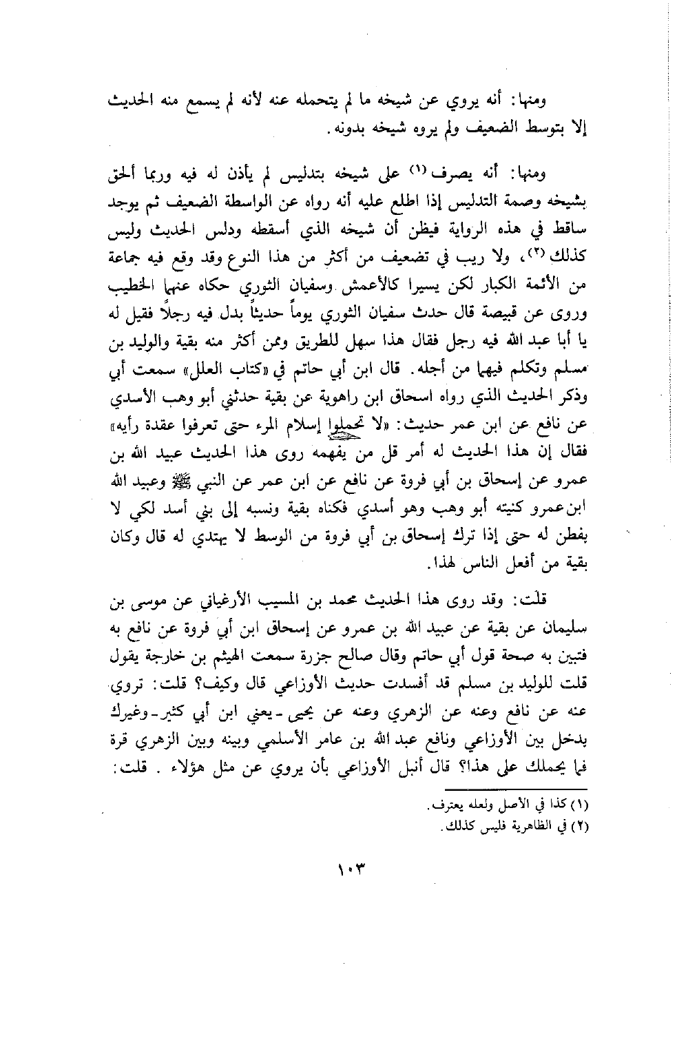 فإذا روى الأوزاعي عن هؤلاء المناكير وهم ضعفاء فأسقطتهم أنت وصيرتها من رواية الأوزاعي عن الإثبات ضعف الأوزاعي فلم يلتفت إلى قولي